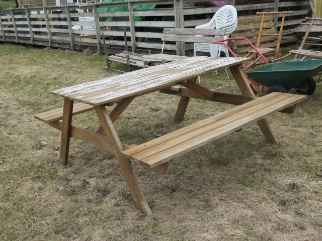 1. Trädgårdsmöbler bord/bänkset l:150 cm