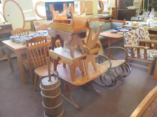 315. Trave furupallar / lampbord /pinnstolar
