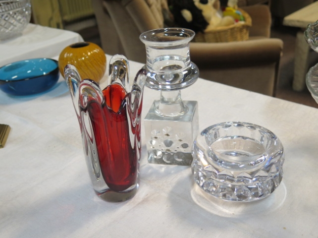Tung skål Silvia - Ingeborg Lundin Orrefors d:12 cm/vas konstglas/ljusstake B. Vallien Kosta