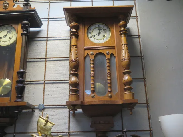 393. Antik väggpendyl ek1800-tal Junghans h:82 cm