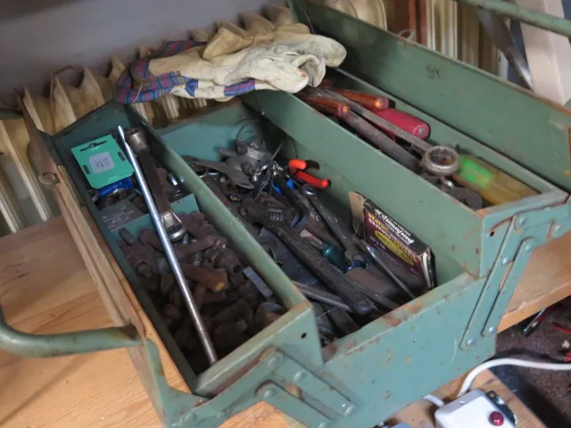 Verktygslåda med div. verktygsinnehåll.. något rostiga..