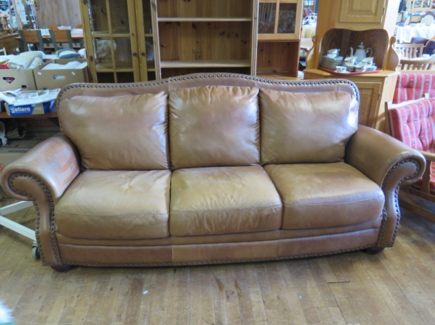 Vintage vräkig pärlspikad skinnsoffa "American Style" L-240 cm