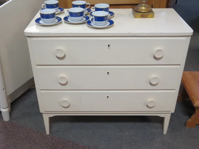 Vitmålad äldre byrå 3 lådor b:85 cm