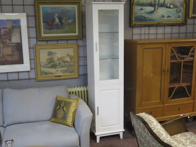 Vitmålat vitrinskåp b:43 cm h:195 cm