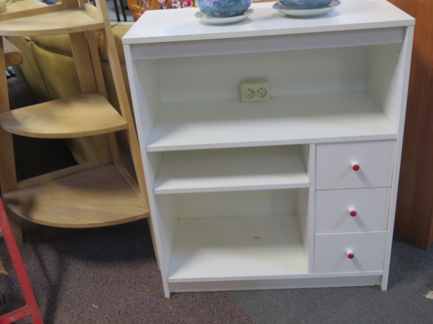 316. Vitt 3 lådigt hyllskåp b:75 cm