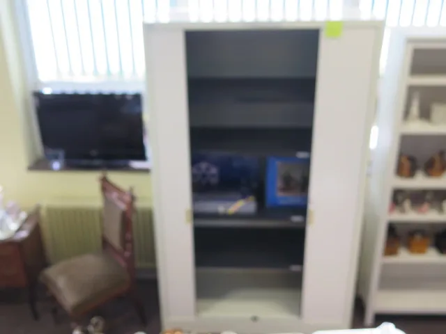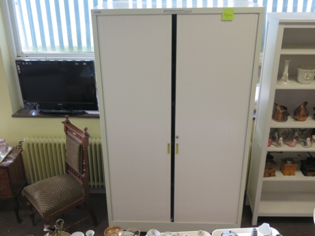 284. Vitt jalusiskåp metallstomme 110x55195 cm