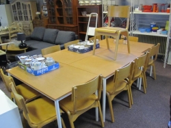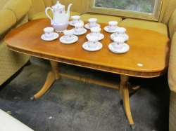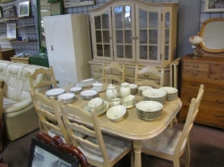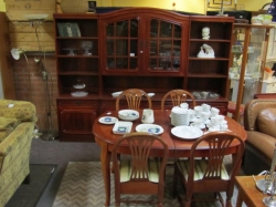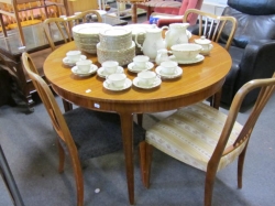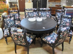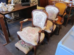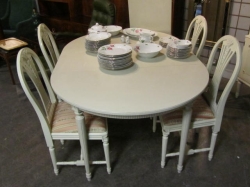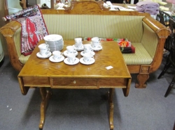 Består av soffa, paret karmstolar, klaffbord med stolar