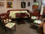 702. Antik salongsgrupp KJ mahogney 6 delar soffa l:225 cm klädd Josef Frank tyg